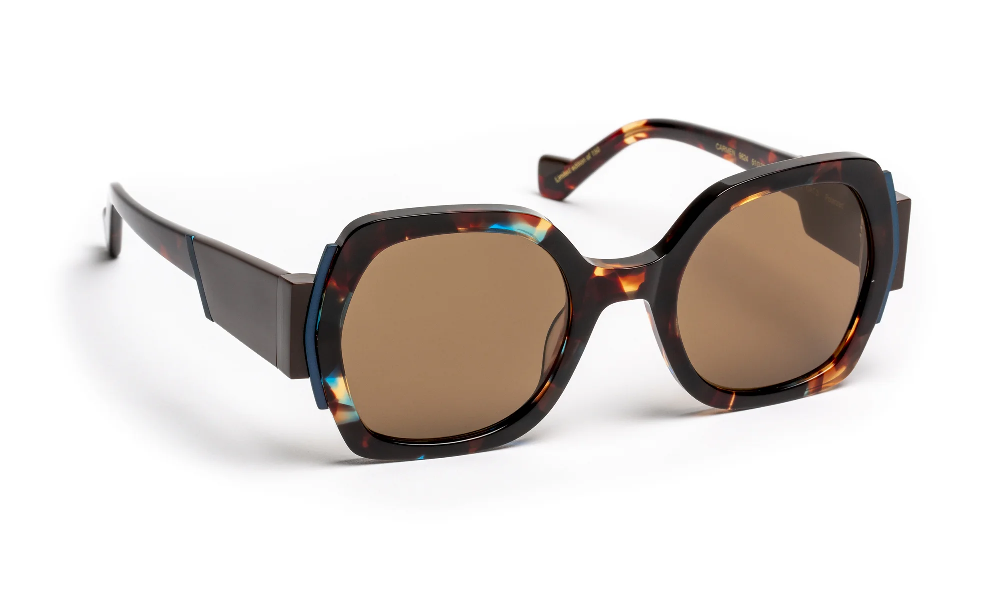 Graphic and bold, this model plays with color and light thanks to a multi-layer construction. The acetate face, highlighted by contrasting lamination and a metal insert, captures reflections and asserts the structure.