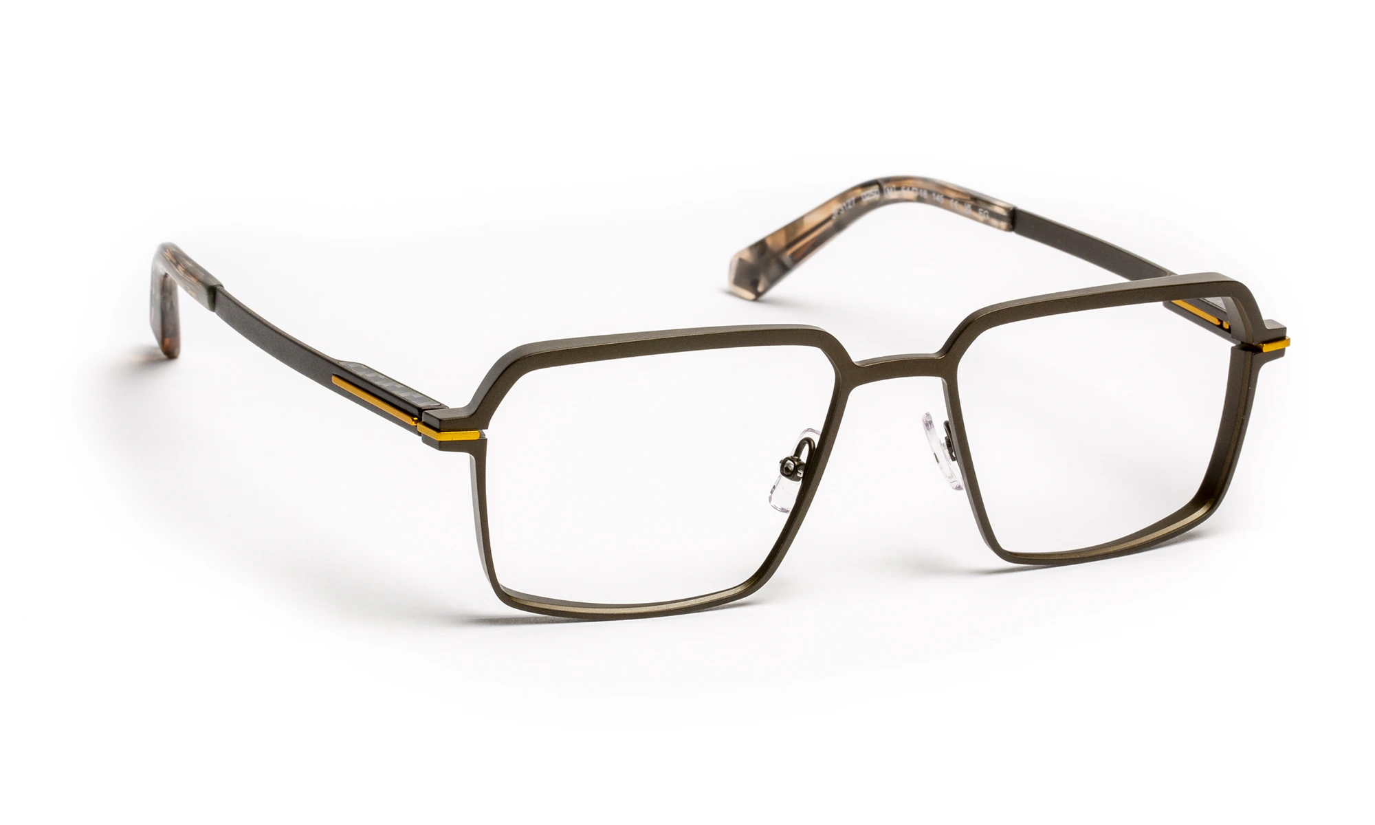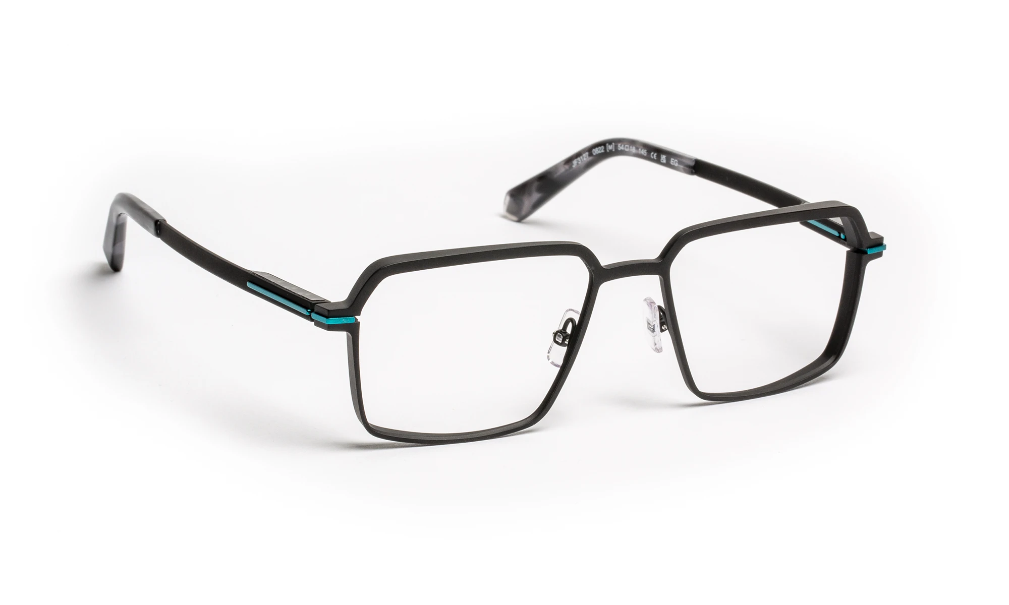 Titanium frame with stainless steel details. The design is distinguished by its elegant lines and colorful metallic line on the temple and post, the signature color of the range. The frame features a screwless flex hinge block integrated into the temple, decorated with carbon leaves. A technology developed by our studio, ensuring flexibility, durability and comfort.