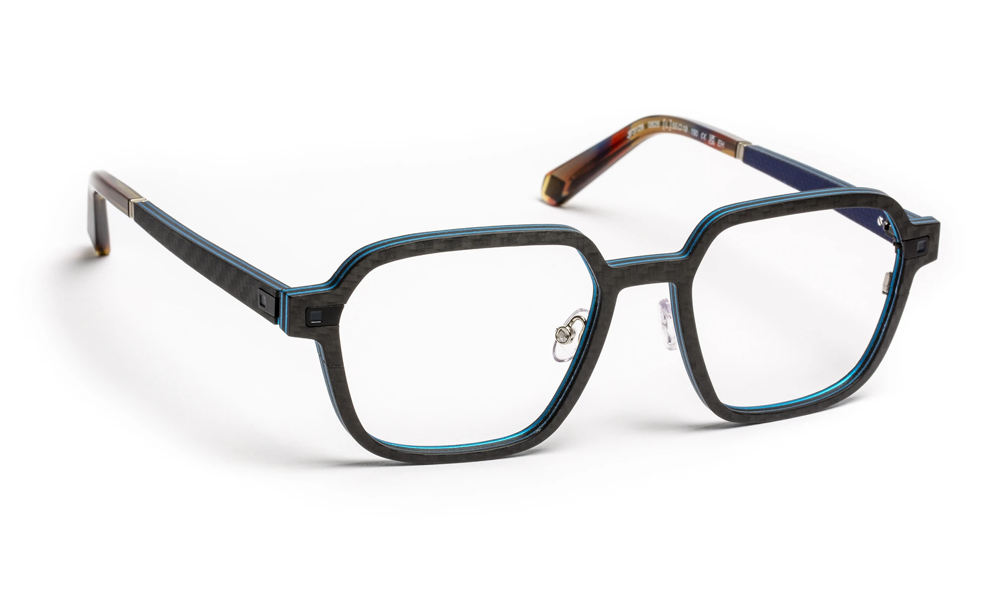 The ErgoFeel® nose pads provide a precise and comfortable fit, while the handcrafted finishes—polishing, surface treatments, and epoxy resin—enhance the technical structure and premium materials.