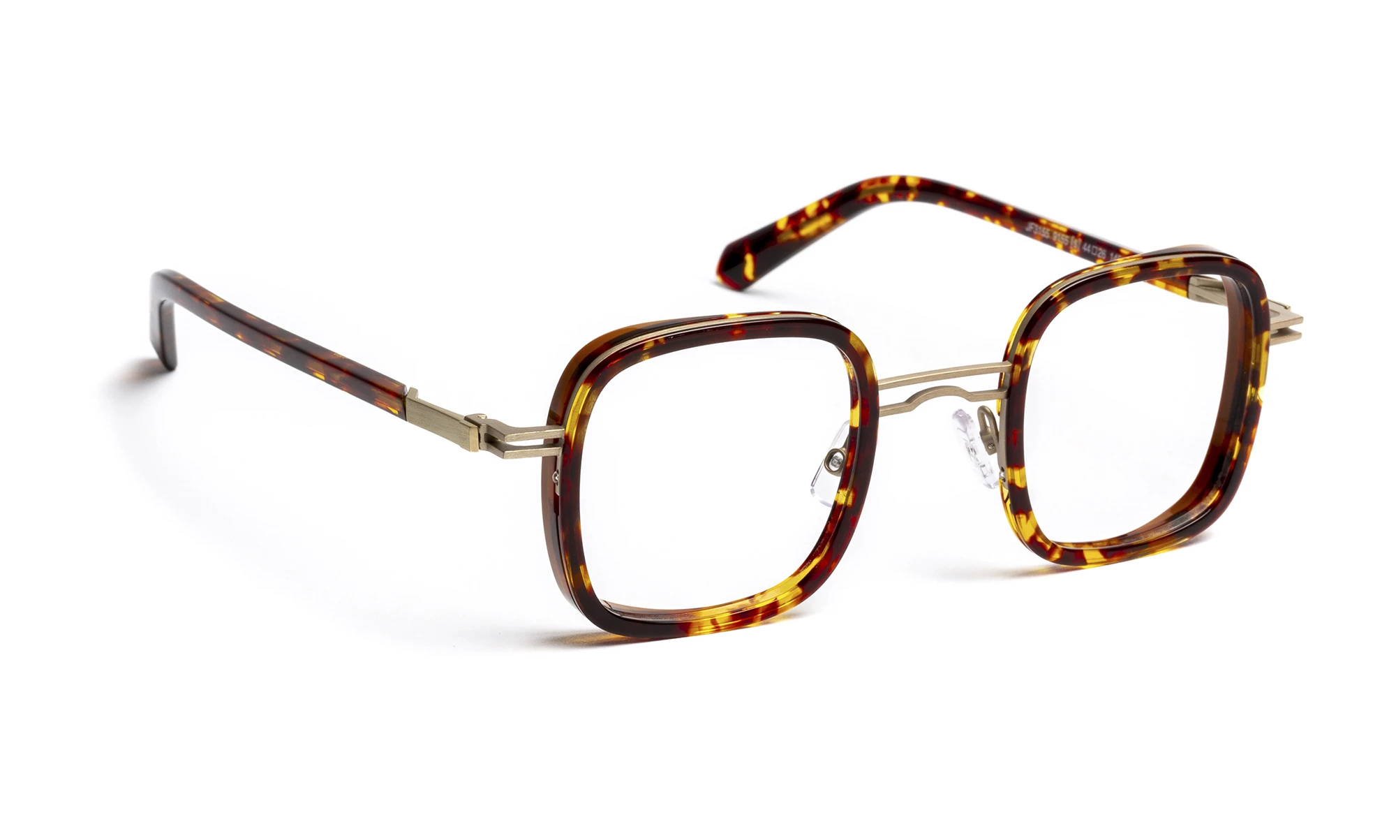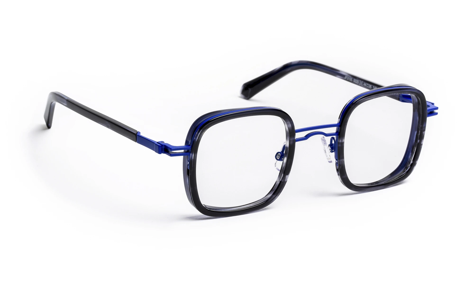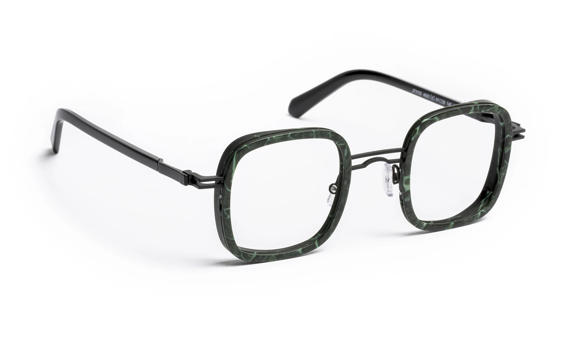 JF3155 is a combined frame in stainless steel and acetate with a contemporary geometric design that retains a retro spirit. The acetate front adds depth and character, while the stainless steel structure highlights a light and elegant look. The temples feature an exclusive screwless flex hinge seamlessly integrated into the design. The range offers tortoiseshell patterns and organic material effects, paired with refined metal tones.