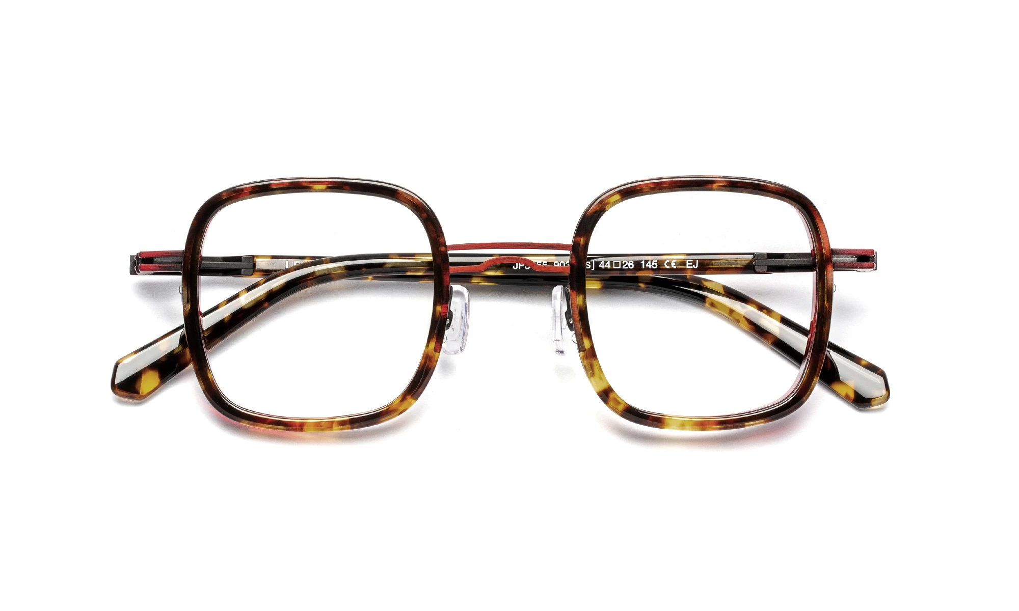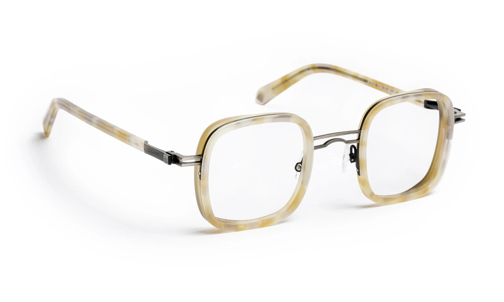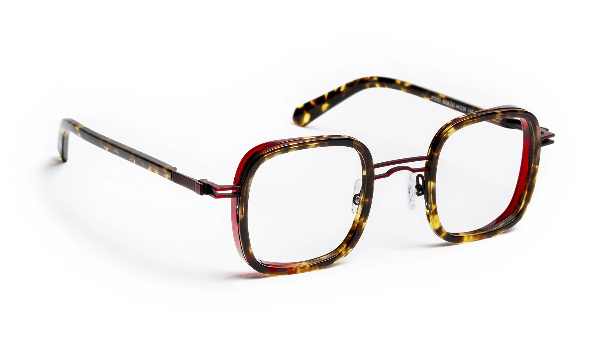 JF3155 is a combined frame in stainless steel and acetate with a contemporary geometric design that retains a retro spirit. The acetate front adds depth and character, while the stainless steel structure highlights a light and elegant look. The temples feature an exclusive screwless flex hinge seamlessly integrated into the design. The range offers tortoiseshell patterns and organic material effects, paired with refined metal tones.
