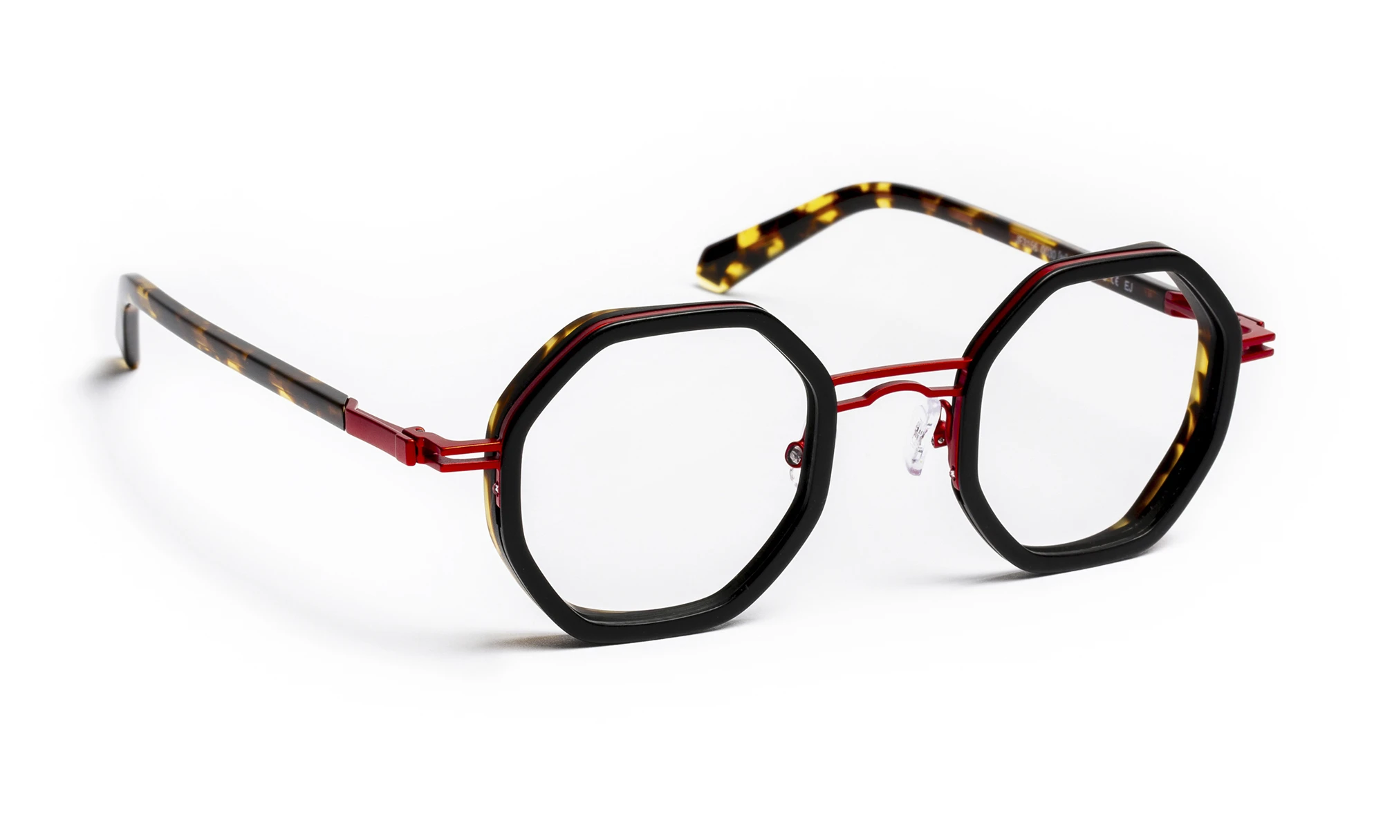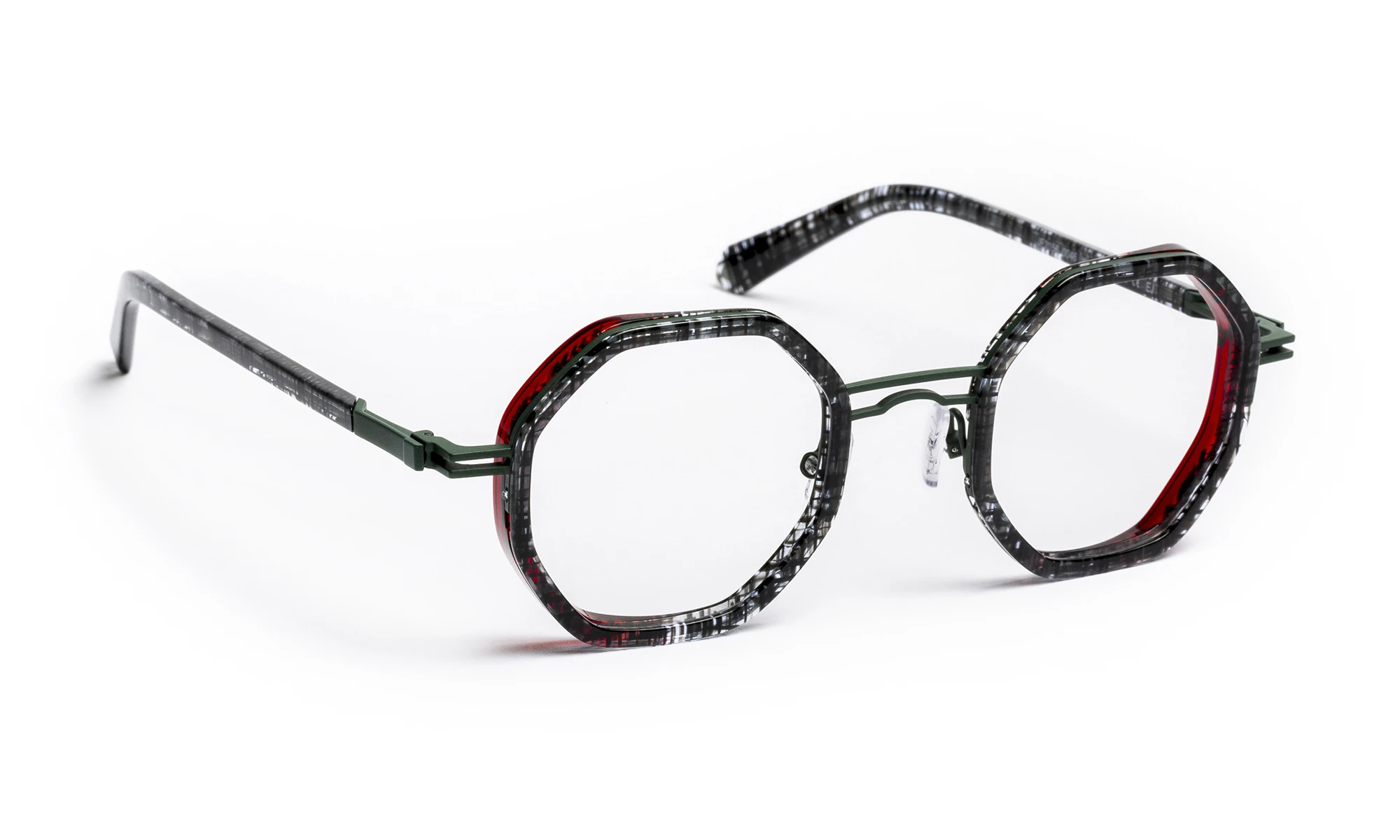 JF3156 is a combined frame in stainless steel and acetate with a contemporary geometric design that retains a retro spirit. The acetate front adds depth and character, while the stainless steel structure highlights a light and elegant look. The temples feature an exclusive screwless flex hinge seamlessly integrated into the design. The range offers tortoiseshell patterns and organic material effects, paired with refined metal tones.