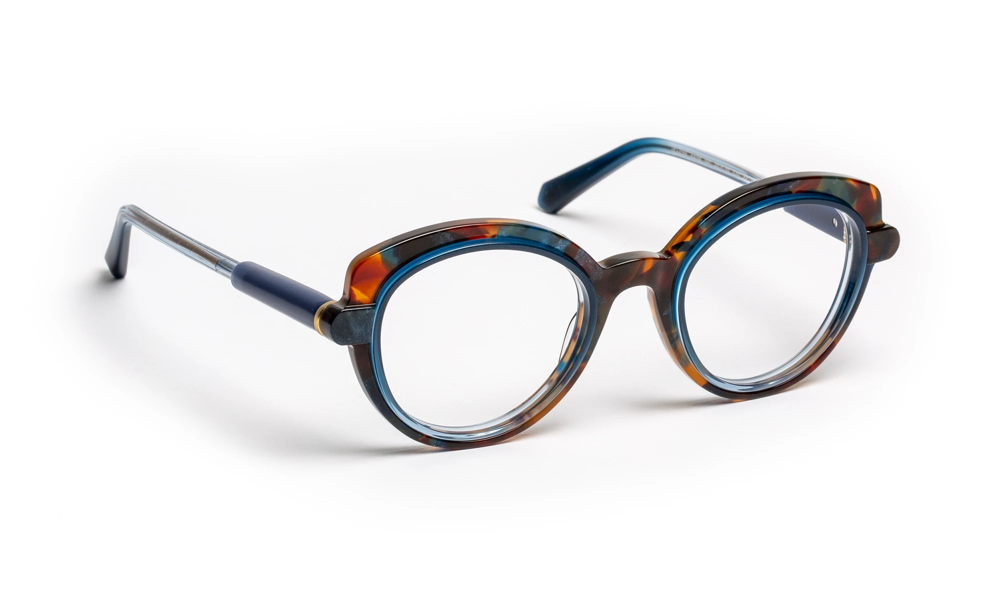 Ce modèle met en valeur la profondeur de l’acétate à travers un jeu de volumes sculptés et de transparences raffinées. Les effets de dégradé, résolument tendance, apportent des variations de couleur subtiles qui réagissent à la lumière. La face aux tenons allongés accentue cette richesse visuelle, tandis que les branches, travaillées avec un effet totem et un manchon diamanté, soulignent l’originalité affirmée de la forme.