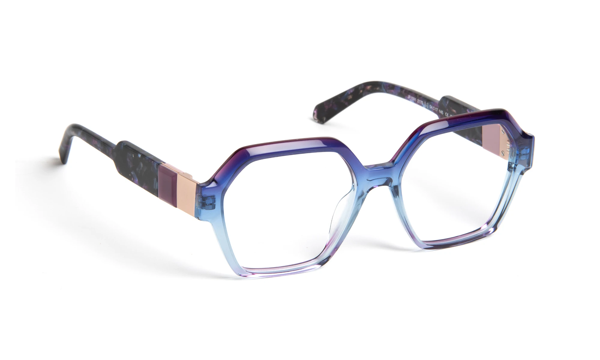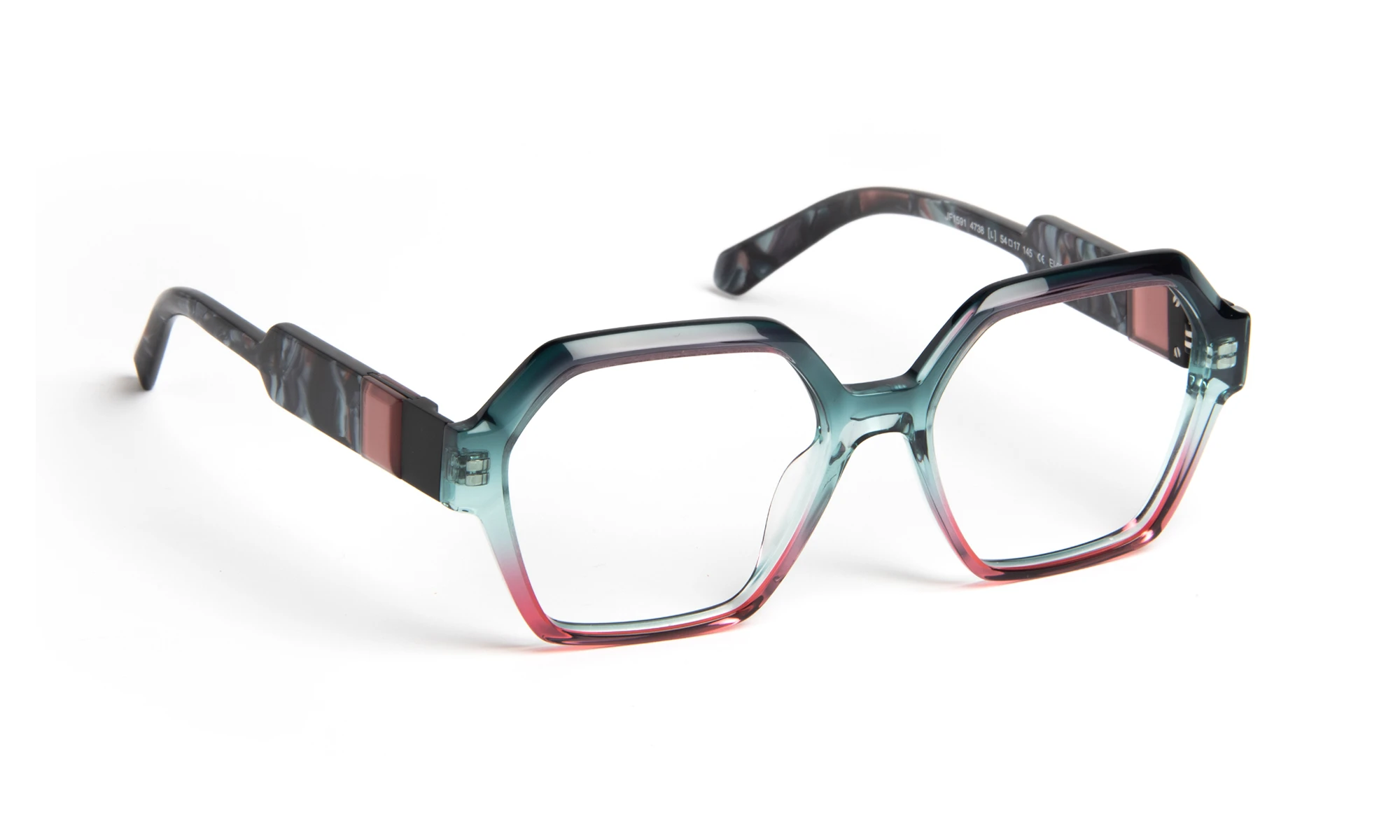 Monture en acétate pour la face comme pour les branches, sculptée dans une géométrie affirmée qui combine courbes douces et angles structurés. Les branches intègrent un duo de carrés décoratifs en métal et acétate biseauté, apportant un accent graphique raffiné. La finition brillante intensifie les couleurs et met en valeur les lignes modernes et élégantes de l’ensemble.
