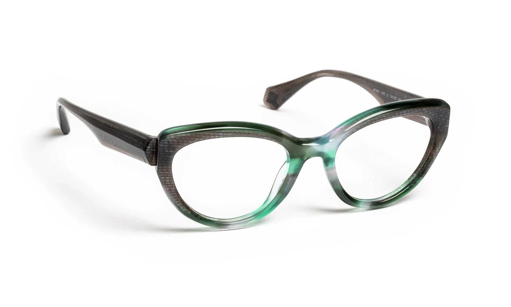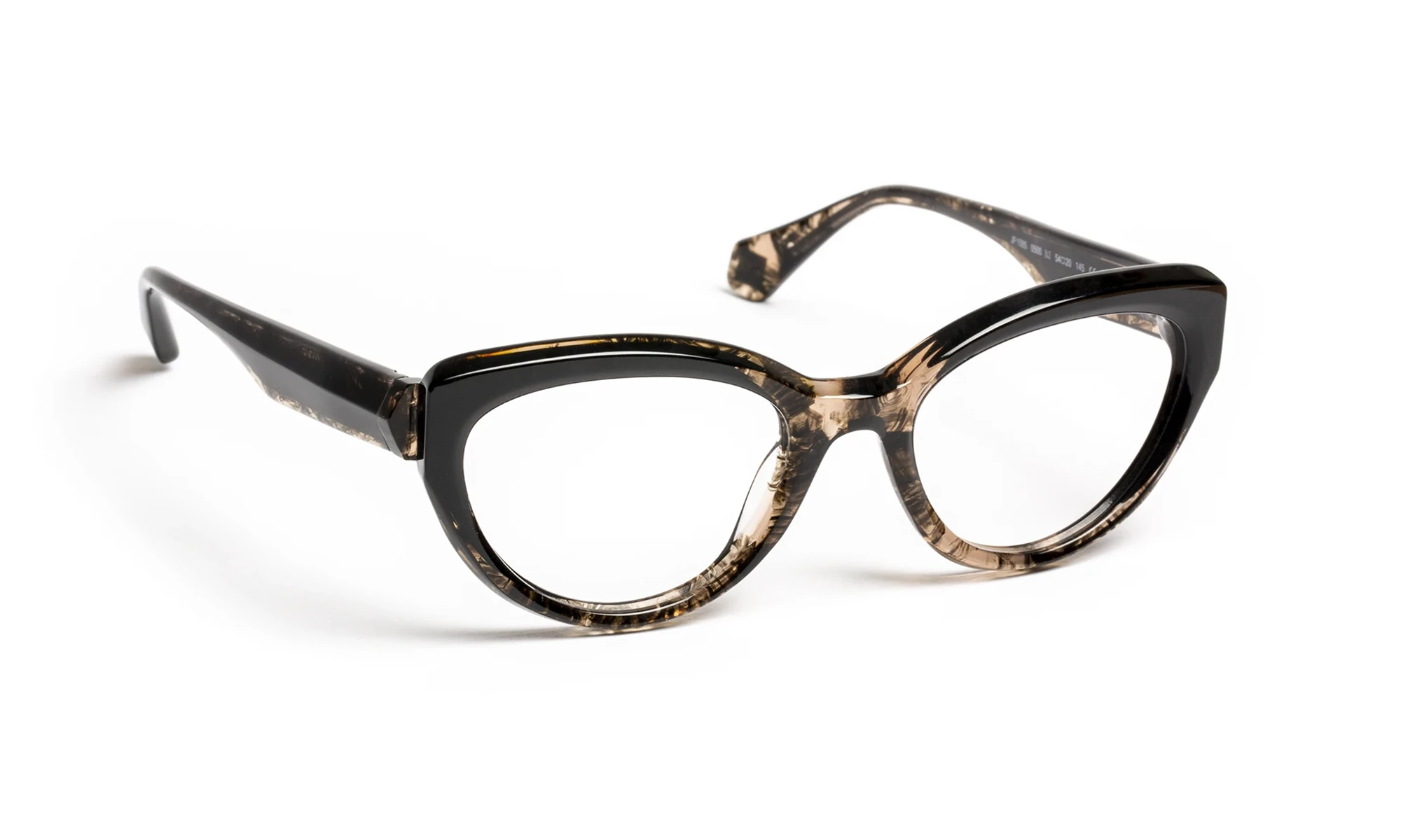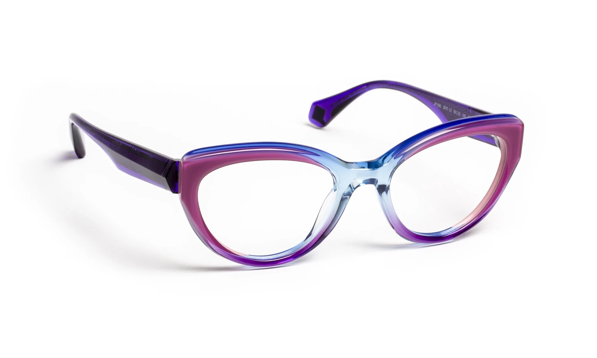 Design et couleurs jouent avec la lumière grâce aux transparences de la matière. Volumes facettés, biseaux précis et éclats translucides créent une allure très mode aux reflets changeants. La branche flex triangulaire se distingue par une soie en métal dont le motif gravé n’apparaît qu’à la lumière. Les matières translucides dégradées, mêlées à des touches colorées, offrent une esthétique vibrante et élégante.