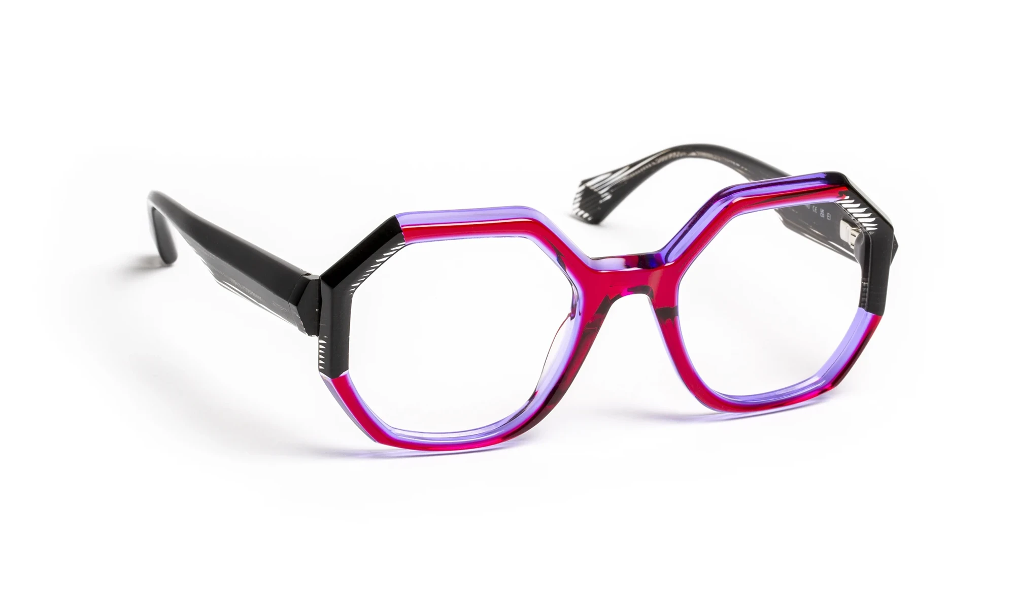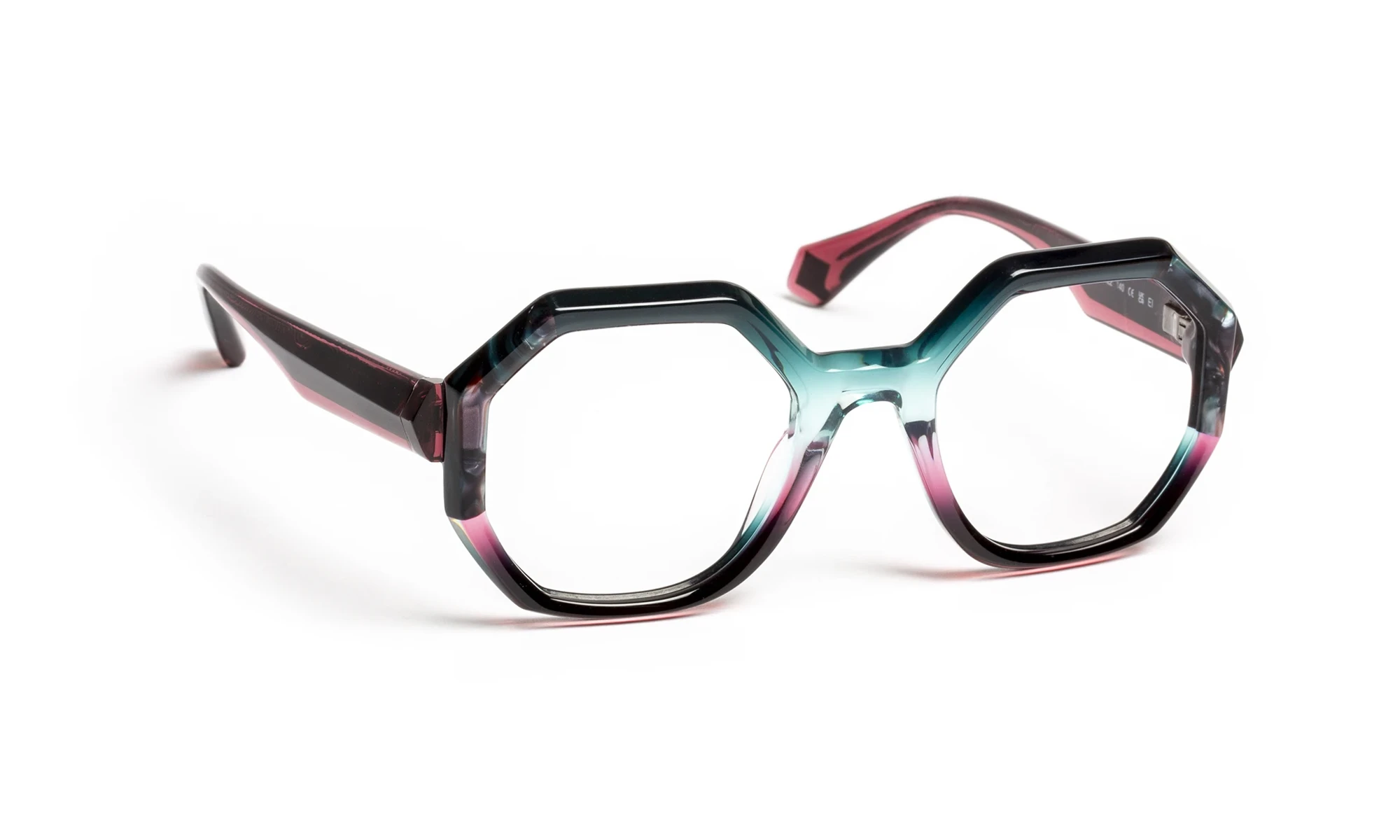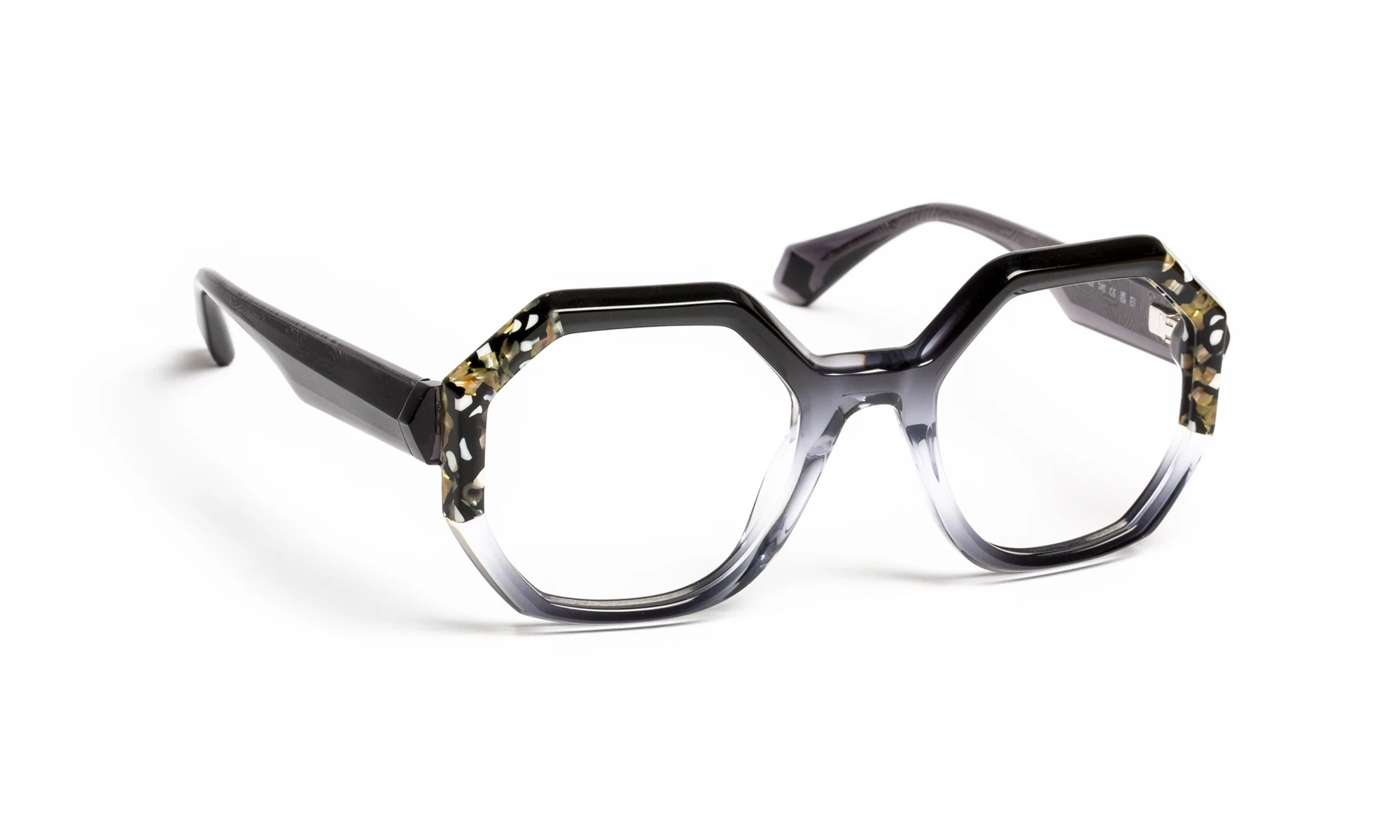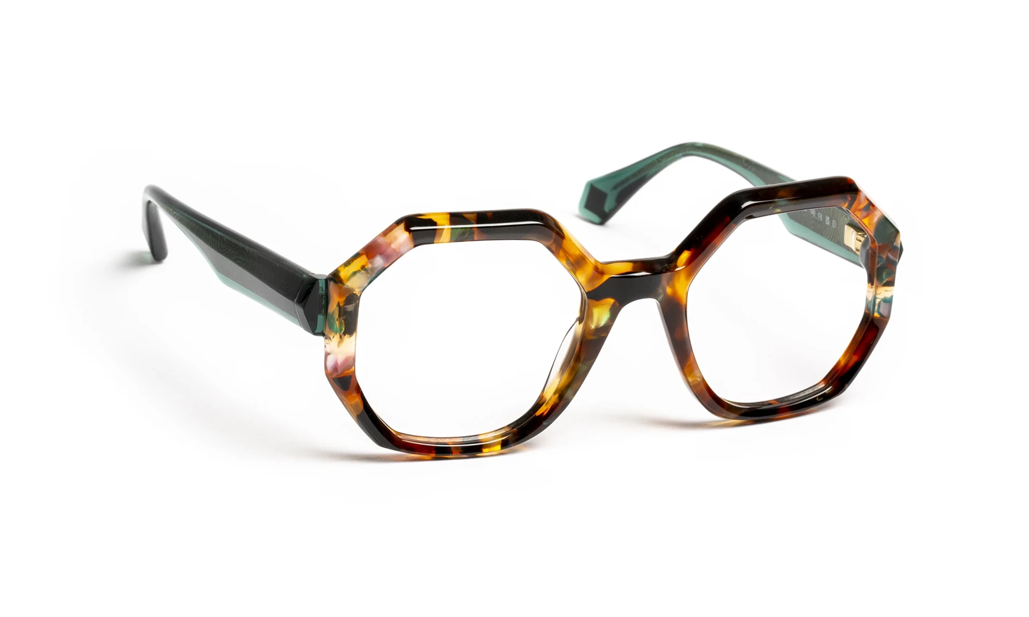 Design et couleurs jouent avec la lumière grâce aux transparences de la matière. Volumes facettés, biseaux précis et éclats translucides créent une allure très mode aux reflets changeants. La branche flex triangulaire se distingue par une soie en métal dont le motif gravé n’apparaît qu’à la lumière. Les matières translucides dégradées, mêlées à des touches colorées, offrent une esthétique vibrante et élégante.
