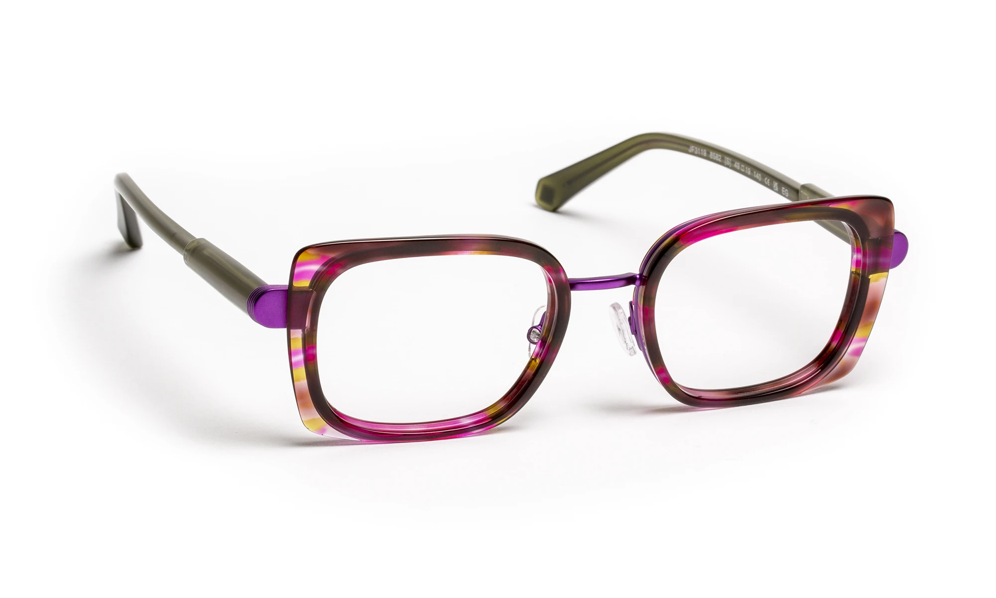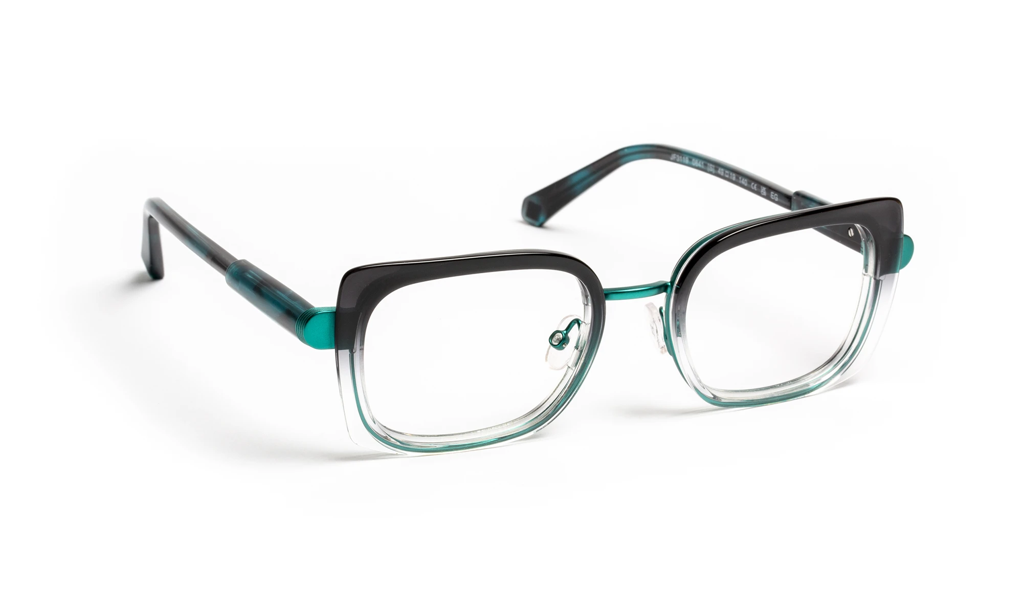 Né d’un dialogue entre métal et acétate, ce modèle unit matière et lumière dans un jeu d’équilibre raffiné. La face en métal enveloppe des cercles biseautés qui captent la transparence, tandis que les branches en acétate révèlent des reflets changeants.