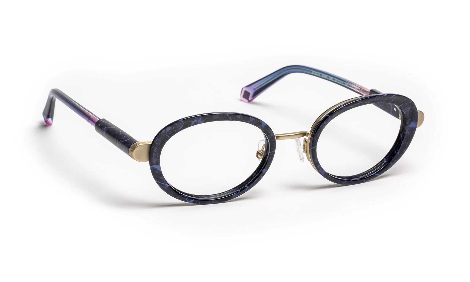 Né d’un dialogue entre métal et acétate, ce modèle unit matière et lumière dans un jeu d’équilibre raffiné. La face en métal enveloppe des cercles biseautés qui captent la transparence, tandis que les branches en acétate révèlent des reflets changeants.