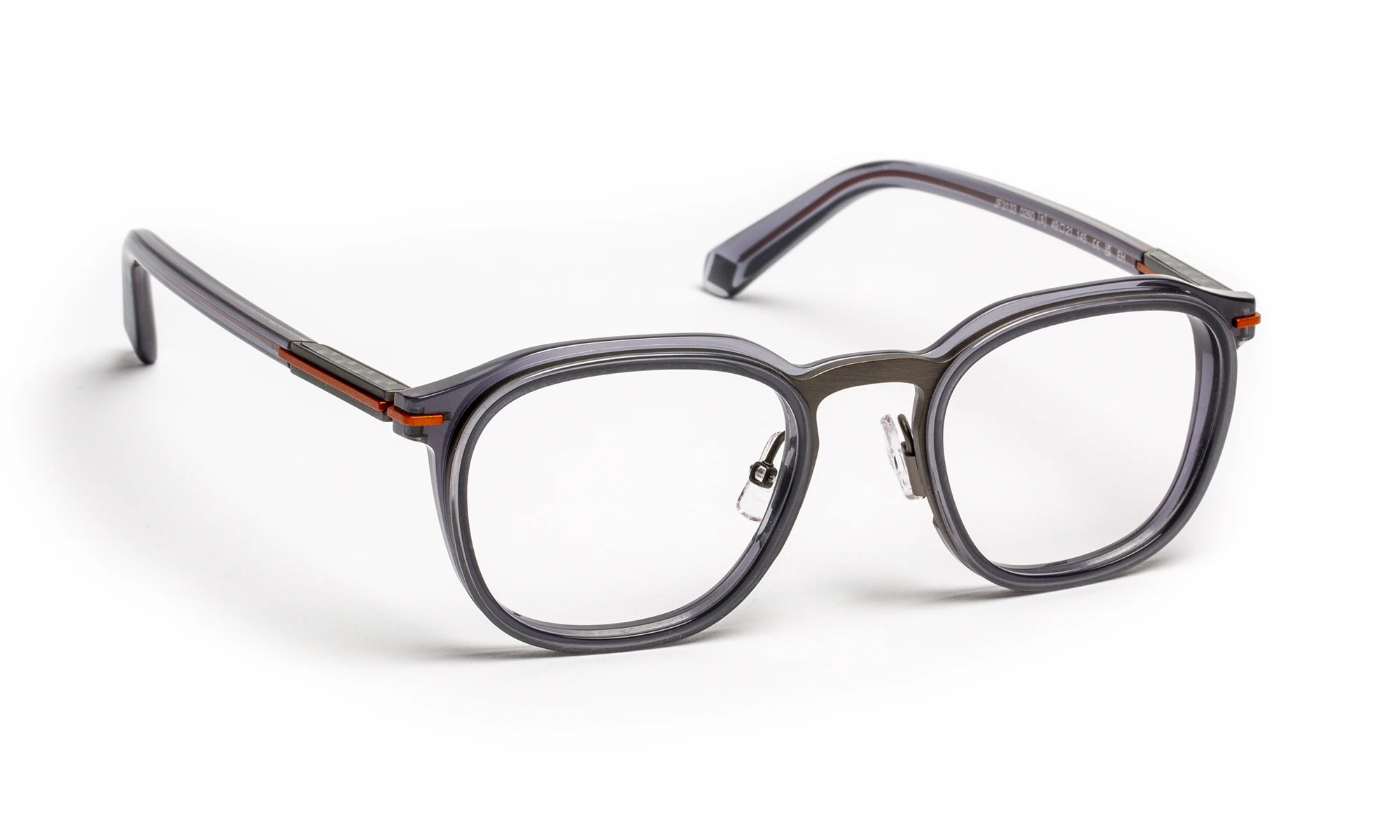 La monture associe subtilement titane et acétate pour tracer une silhouette affirmée et résolument contemporaine. Une ligne métallique s’étire depuis les tenons et accompagne la branche, créant un détail signature qui renforce l’expression moderne et élégante du modèle. Les branches en acétate sont portées par un bloc charnière flex sans vis, développé dans notre studio, garantissant une flexibilité maîtrisée, une grande résistance et un confort durable.