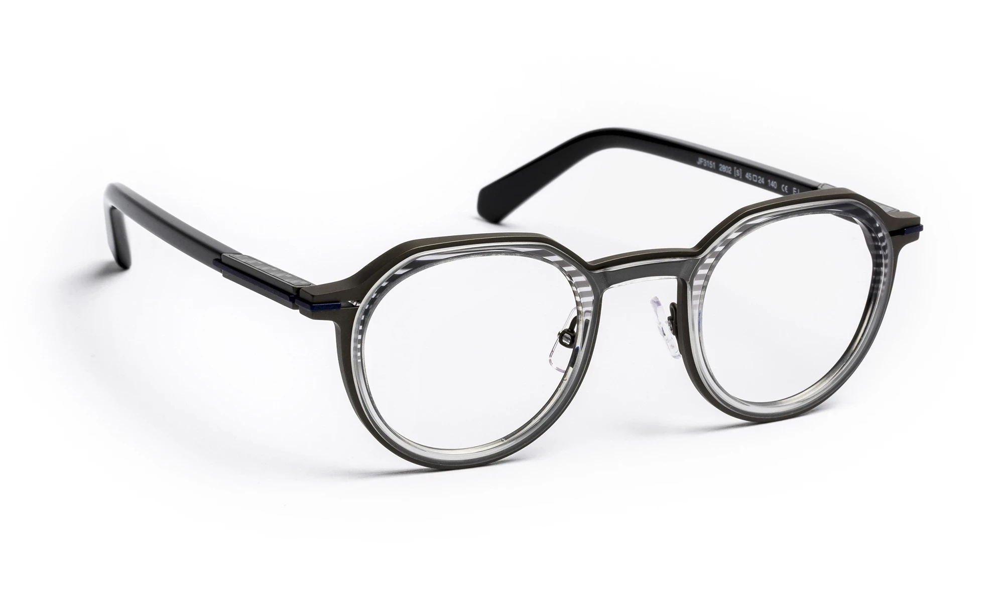 JF3151 est une monture combinée associant titane et acétate dans une construction aux lignes géométriques affirmées. La face structurée renforce son caractère architectural. Les branches intègrent un flex exclusif avec finitions titane et carbone, soulignant l’approche technique et contemporaine du modèle. La gamme propose des déclinaisons aux motifs graphiques, translucides ou dégradés, apportant relief et modernité à l’ensemble.